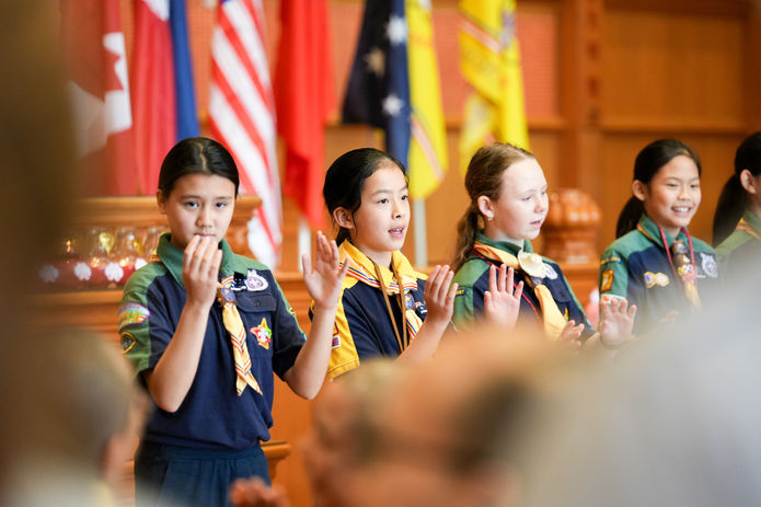 世界童軍運動組織(WOSM)顧問(成人童軍)2023-2026暨澳洲童軍副主席及亞太區委員會委員 Mr. Elston Hynd、新南威爾士州童軍首席專員 Mr. Lloyd Nurthen 、國際佛光會佛光童軍聯誼委員會主任委員李耀淳、世界總會秘書長覺培法師、世界總會大洋洲副秘書長滿可法師、世界佛光童軍輔導法師覺多法師等貴賓雲集,見證佛光童軍歷史新頁。開營典禮上,獻唱全球首支佛光童軍主題曲 Buddha's Light Scout,由紐約協會會長陳澄慧創作,藉此鼓舞佛光童軍們謹記佛光精神和三好理念,用信仰照亮方向,實踐三好,成為慈悲、勇敢、行善的世界公民。